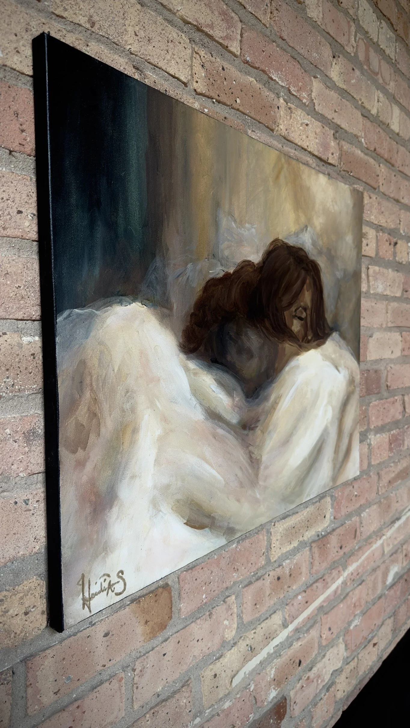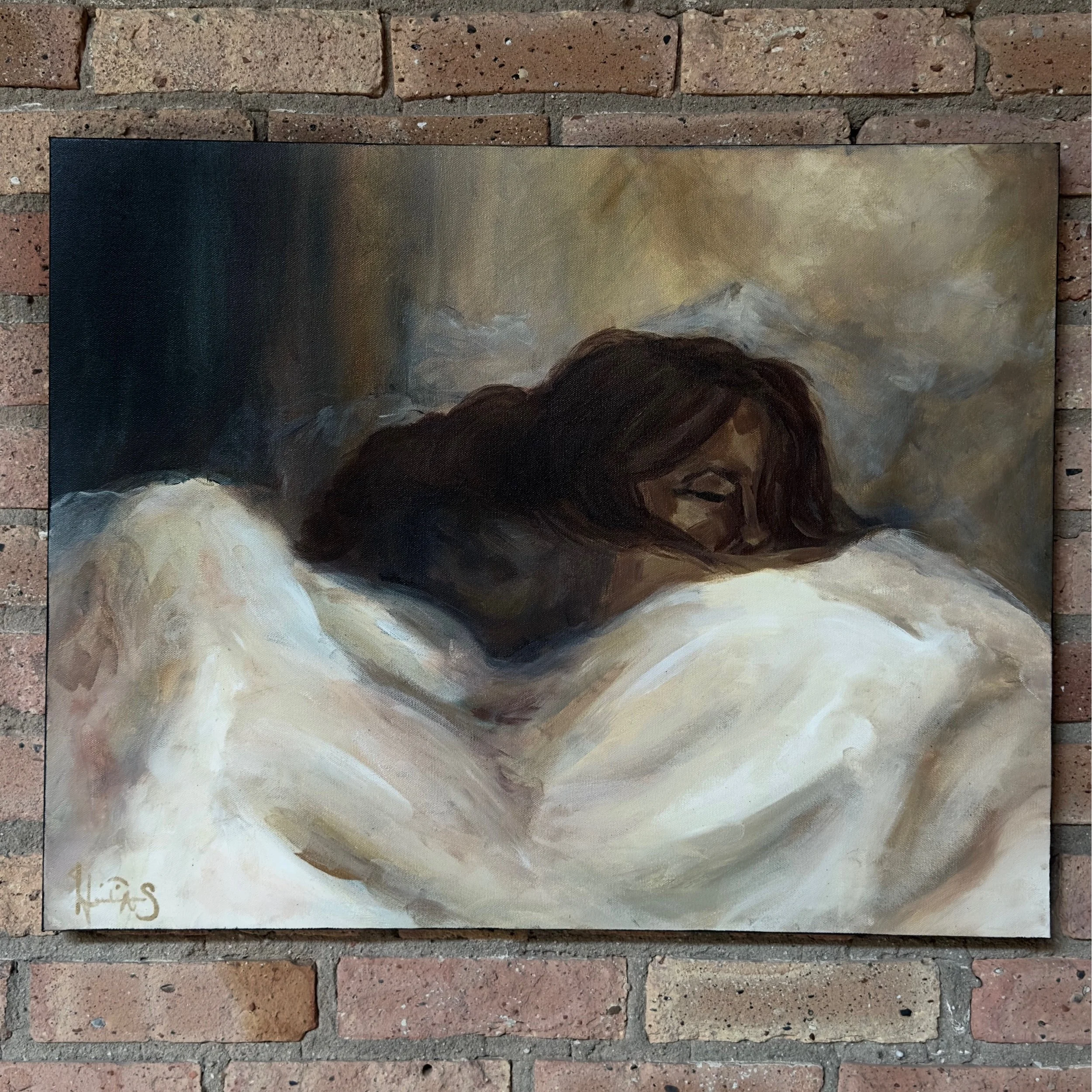 Do you dream of me like I dream of you? Various interpreters believe that souls can connect through their dreams, or be visited by our loved ones that have passed on. In this first-ever painted “self-portrait",” this piece explores longing, yearning, dreaming of connection and reconciliation.