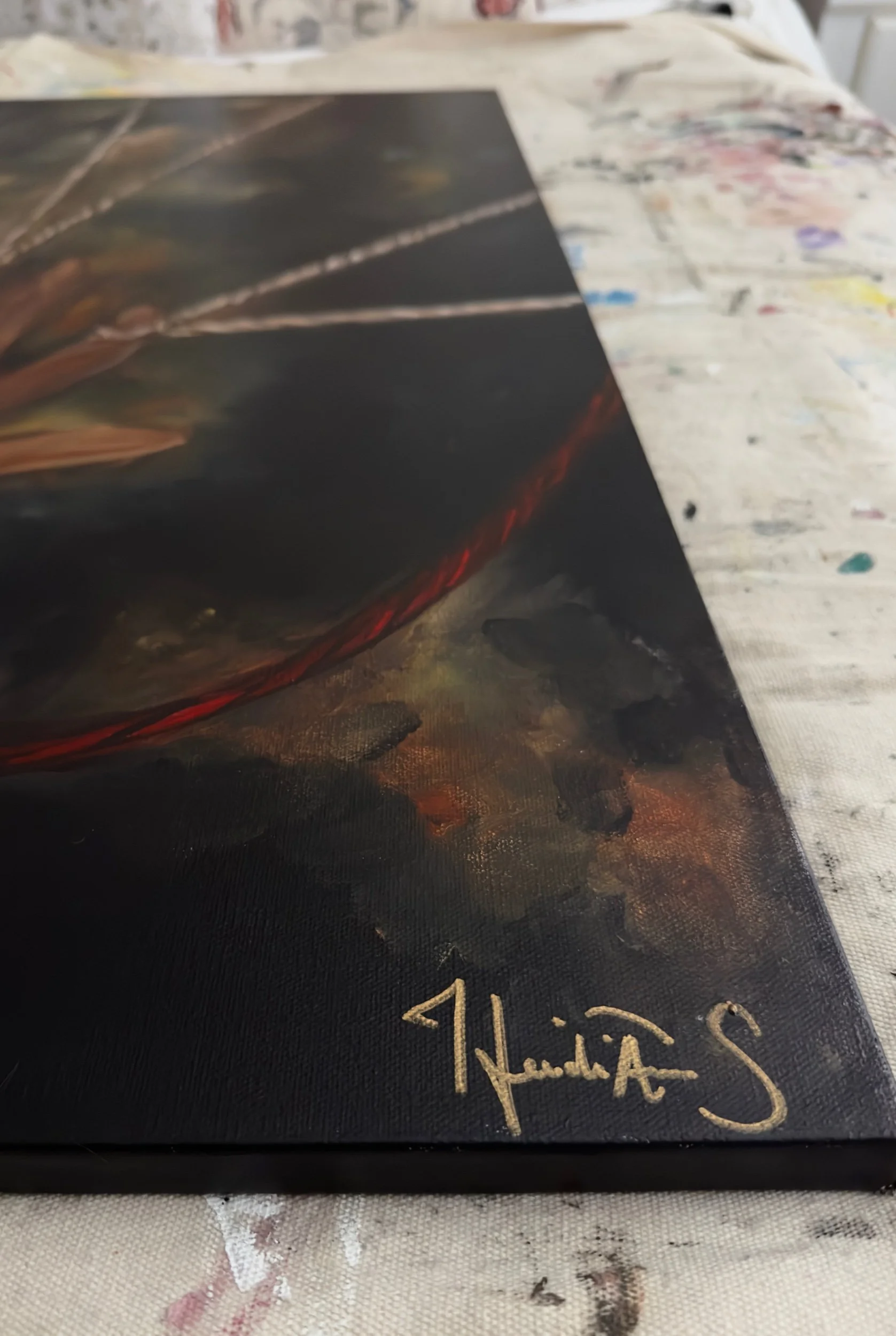 All colors have been organically mixed from the primary colors, and thus are entirely unique. They are painted and detailed with various brushes, and signed in 18 karat gold.